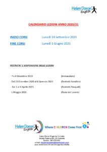 Ecco il calendario delle lezioni per l’anno scolastico 2020/2021! Auguriamo a tutti i nostri studenti un fantastico nuovo anno insieme!