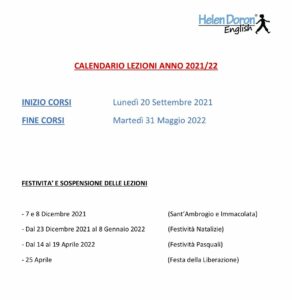 Ecco il calendario delle lezioni per l’anno scolastico 2021/2022! Auguriamo a tutti i nostri studenti un fantastico nuovo anno insieme!