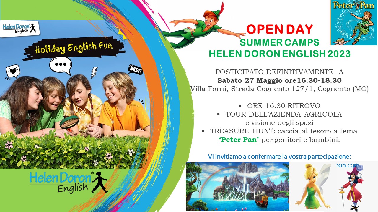Vi aspettiamo numerosi all’OPEN DAY, che si terrà SABATO 27 MAGGIO ore 16.30 – 18.30, dedicato alla presentazione degli ALL-ENGLISH SUMMER CAMP 2023!!!