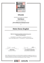 Premiata per 2 anni consecutivi come “Miglior scuola di lingue in Germania per: materiale didattico, contenuto del materiale, efficacia, servizio, prezzo, contenuto e recensioni”. Helen Doron English è al primo posto!