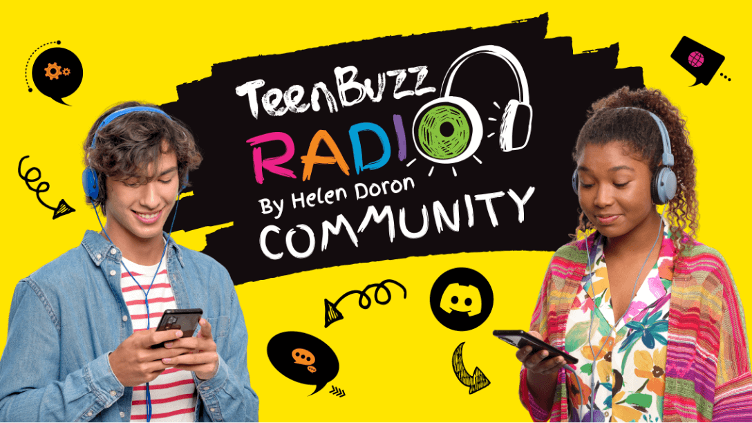 Una comunità sicura, monitorata e attiva dove gli adolescenti possono ritrovarsi, chattare tra loro in inglese su argomenti importanti per loro e ascoltare e discutere i contenuti e la musica in diretta streaming di TeenBuzz Radio.