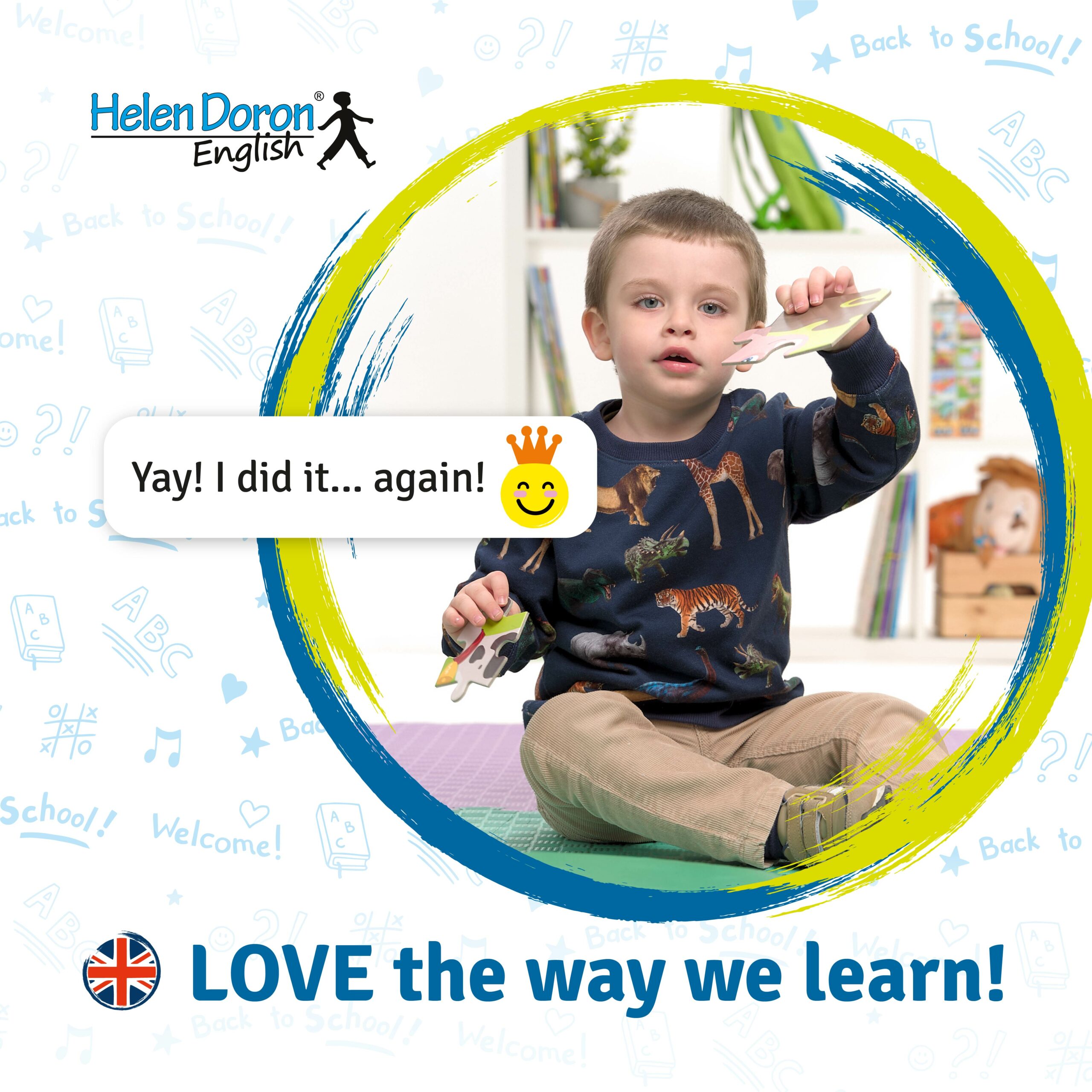 Nei corsi Helen Doron English per bambini dai 4 ai 9 anni, le lezioni si basano sull’incoraggiamento costante da parte dell’insegnante. I bambini si divertono a cantare le canzoni del corso, ballare e giocare. Si sentono bene, sono sereni e tranquilli. Per questo, vorranno ripetere ancora e ancora l’esperienza, di lezione in lezione: “Evviva! L’ho fatto di nuovo!“.